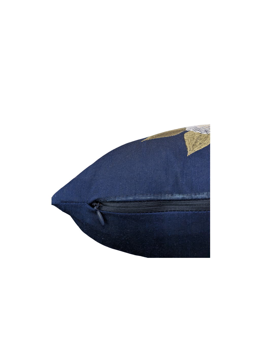 Blossoms embroidered cotton navy Blue Cushion Cover | 16x16* inch |bird and floral embroidered cushion covers | pack of 1