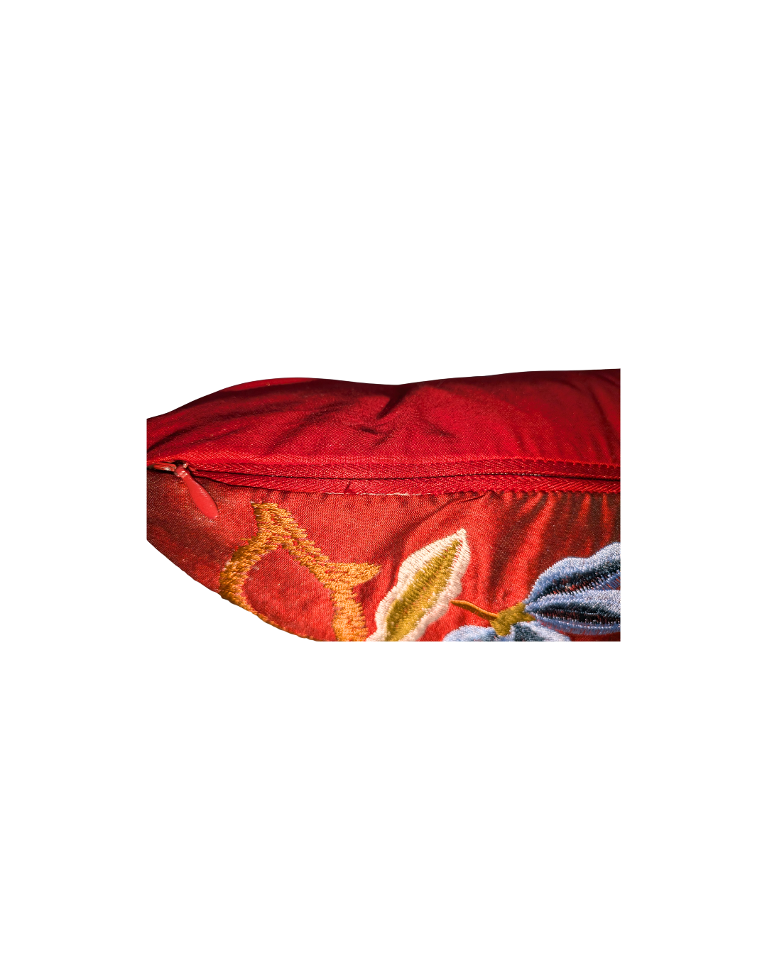Blossoms embroidered cotton mehroon Cushion Cover | 16inch round cushion covers with filler | floral & bird embroidered | pack of 1