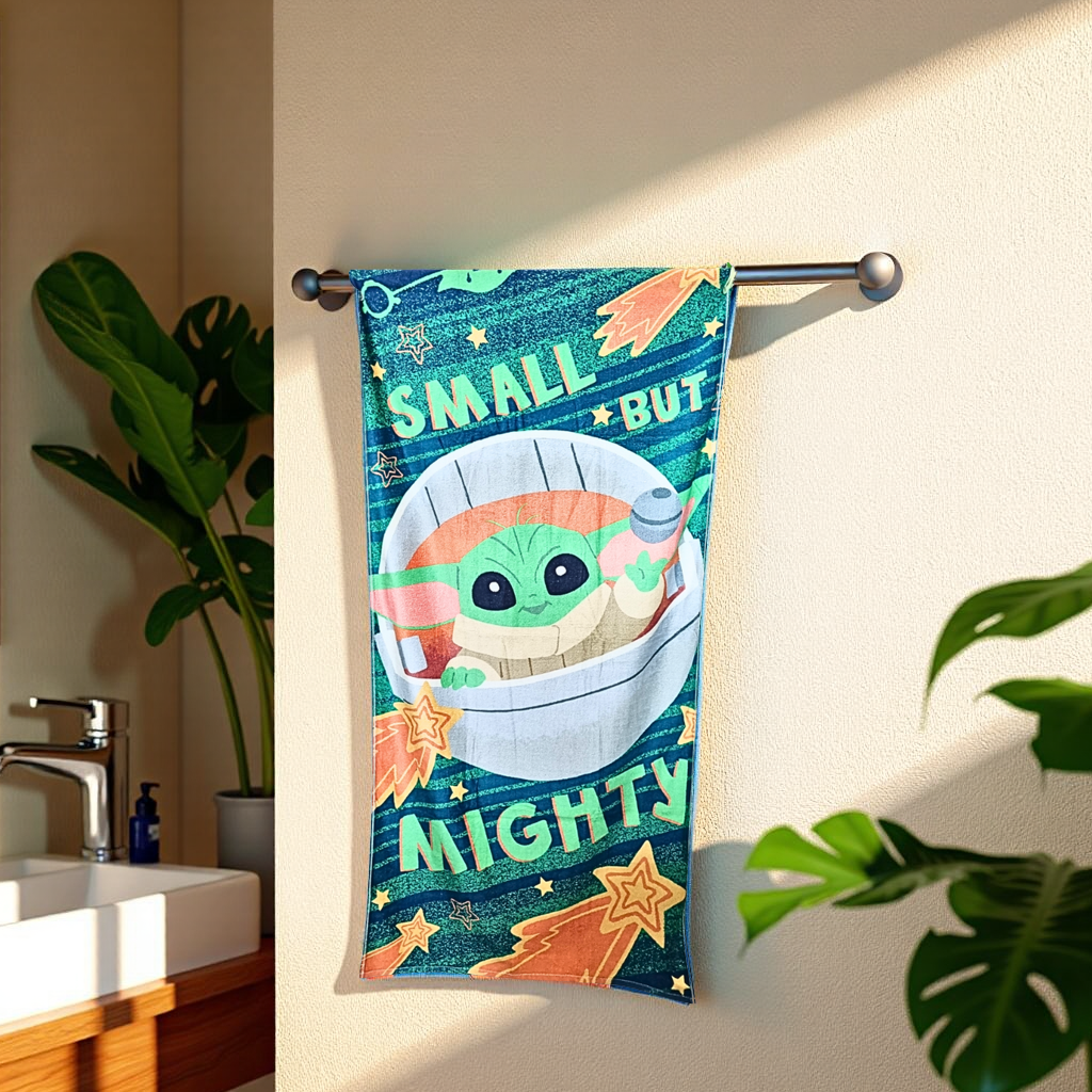 Blossoms kids "Baby Yoda" cartoon printed Towels | 100% Cotton towels| | safe for kids | big size 36x62 inch | set of 1 pc .