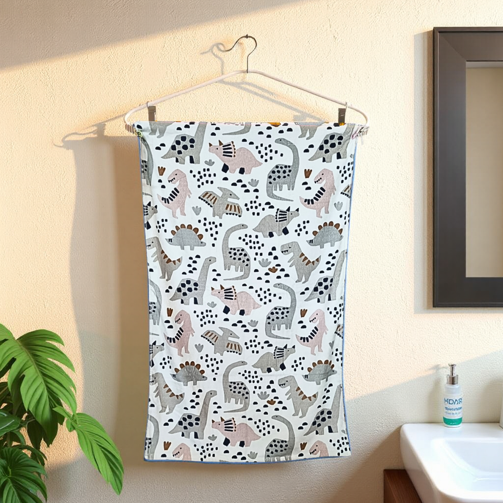 Blossoms kids "White Dinos" cartoon printed Towels | 100% Cotton towels| | safe for kids | big size -29x47 inch | set of 1 pc .
