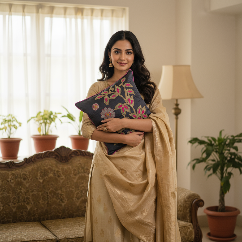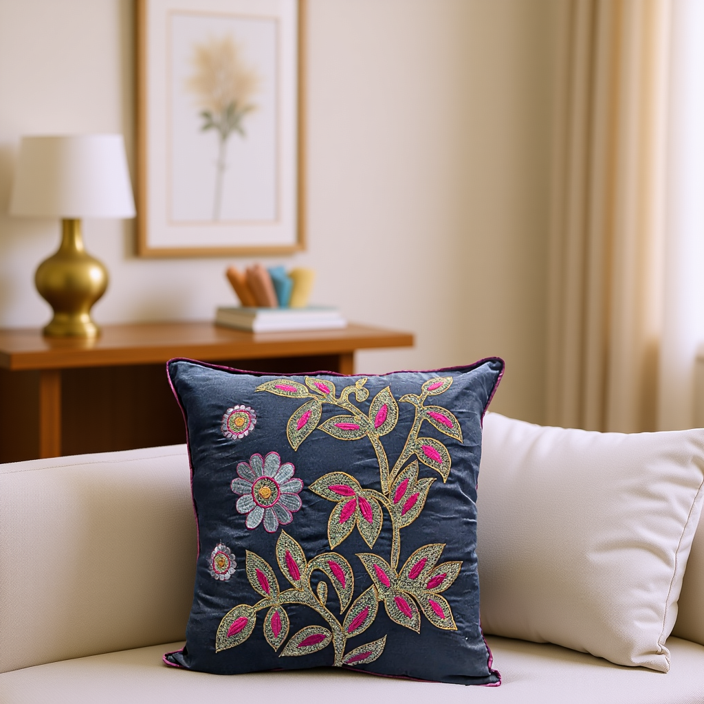 Blossoms blue colour cotton fabric Cushion covers| 16x16 inch | super premium embroidery | pack of 1