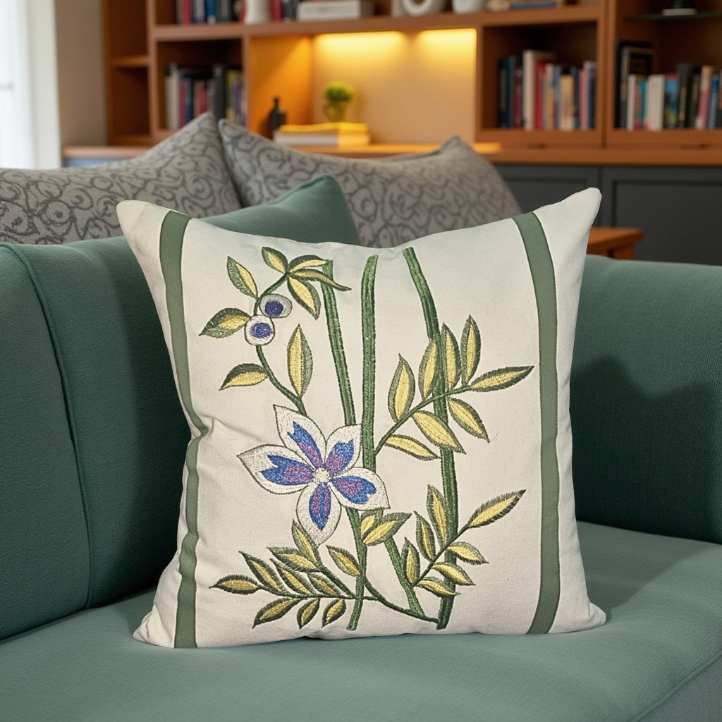 Blossoms Decorative Designer Cushion Cover |Embroidered work| 16x16|inch, Cotton Fabric|floral Design.