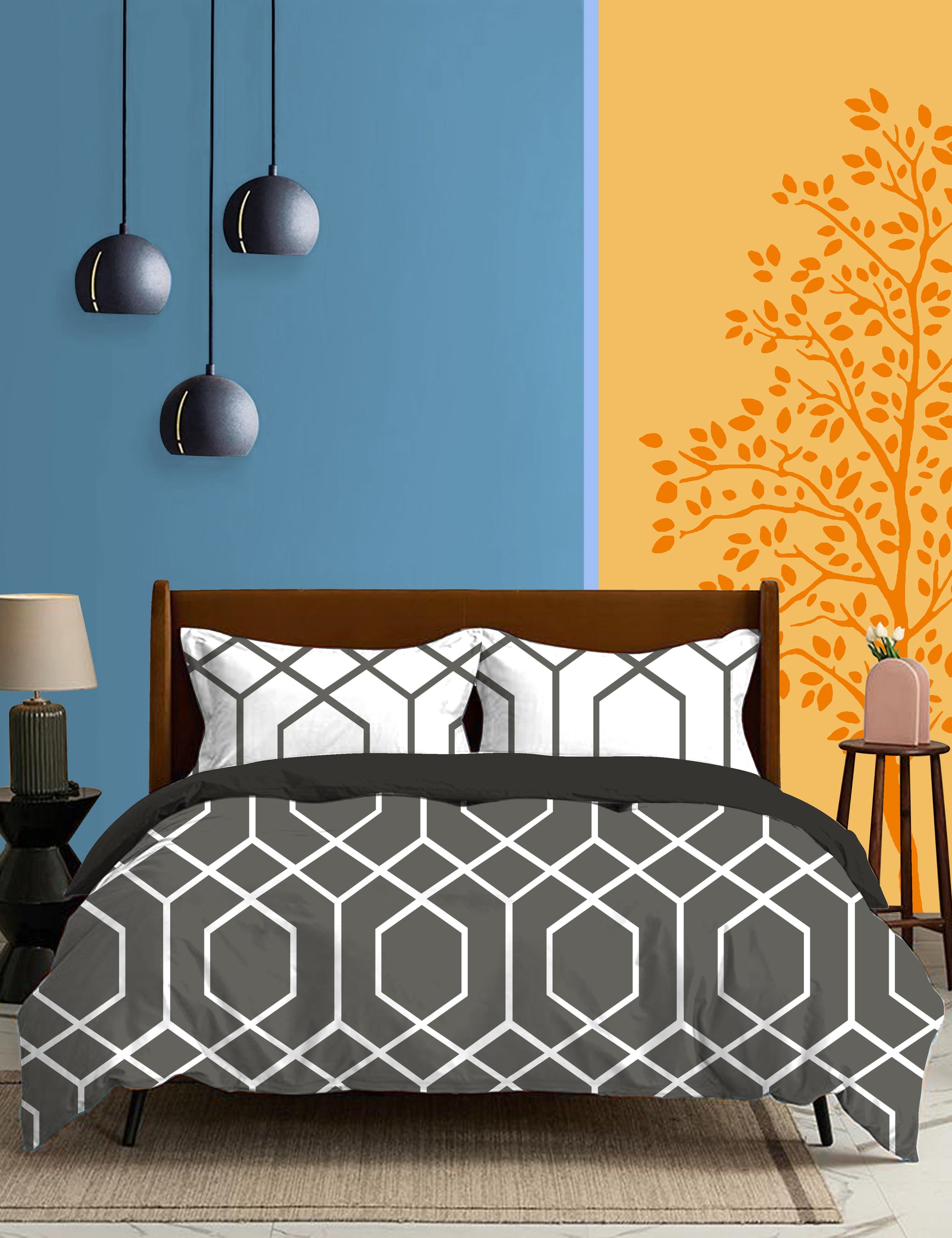 Blossoms Super King Size Premium Quality Geometric Design Bedsheet 100% Cotton 210-TC Super-Fine