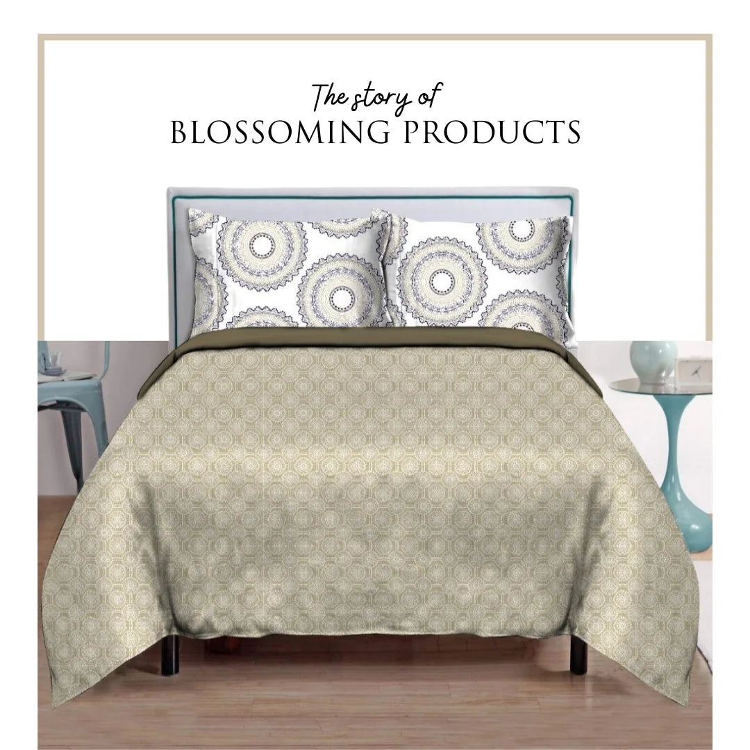 Blossoms 9 pc green and cream bedding set with soft and durable micro cotton fabric . Includes 1 comforter(reversible) ,1 dohar reversible, 1 bedsheet , 2 pillows and 4 cushion covers only .